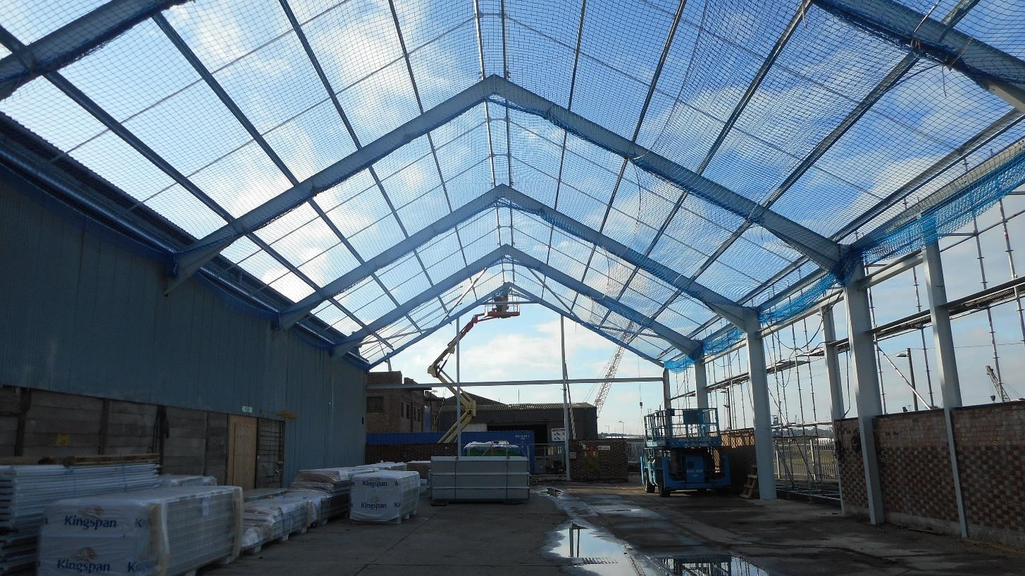 Design & Construction for the removal of the existing cladding and roof frame. Reconstruction of the roof structure to accommodate a 30 degree roof slope together with new wall and roof cladding, new personnel and roller shutter doors.