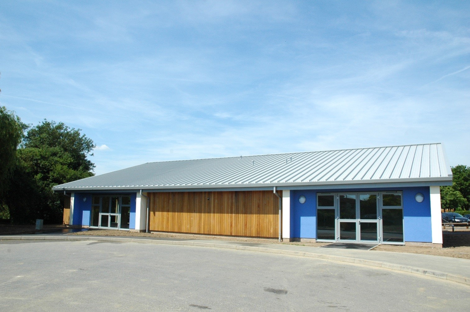 A new community building, masonry construction with associated steel support frame, alumasc lightweight external render and timber cladding, aluminium standing seam roof with associated aluminium rainwater goods.